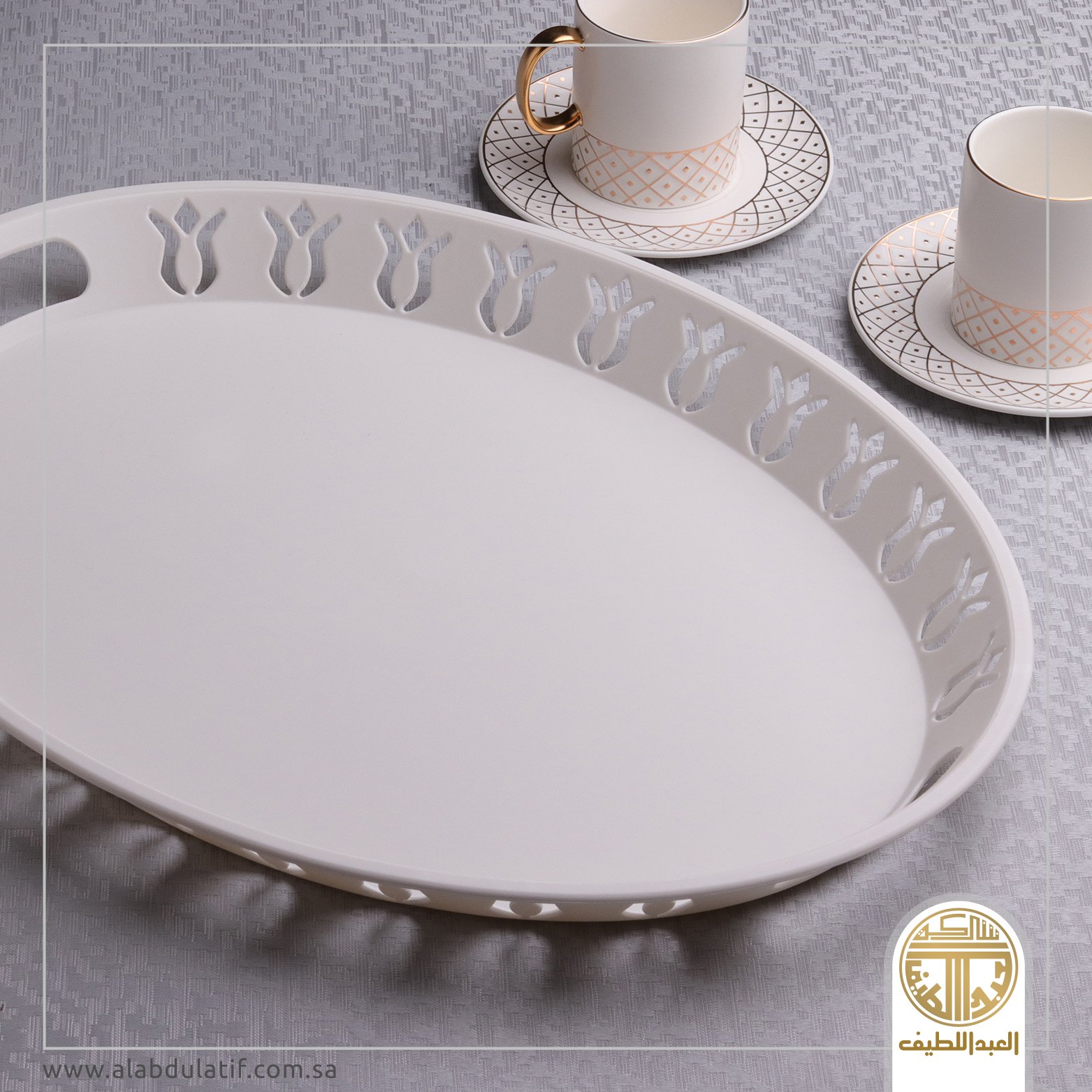 تبسي تقديم ميلامين بنقش القط العسيري متوفر بمقاسين الكبير مقاس 43.5×43.5 إرتفاع 4 سم الصغير مقاس 32×32 إرتفاع 4 سم
