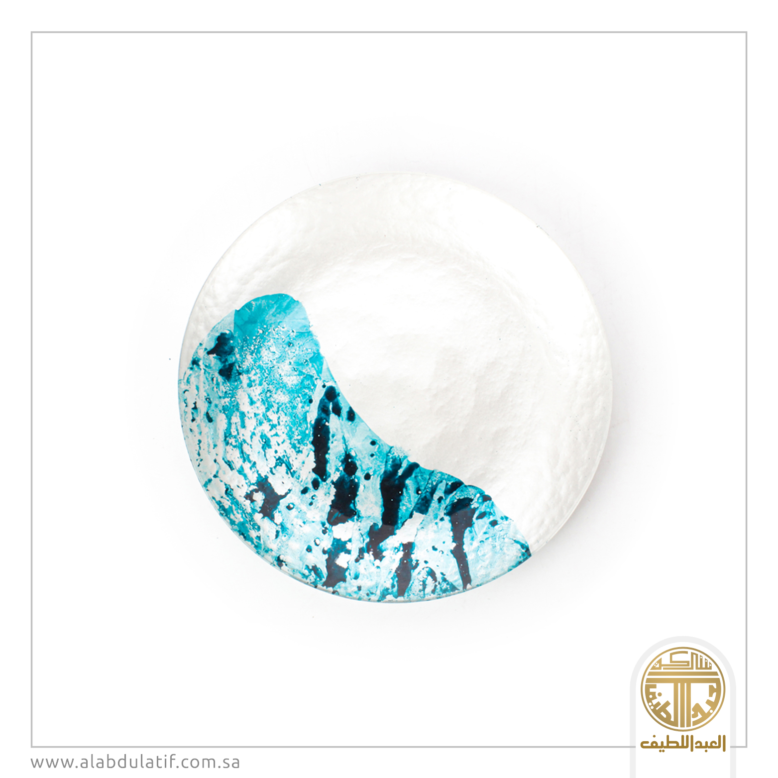 صحن تقديم دائري باللون الفضي مدمج فيه اللون الازرق بدرجات