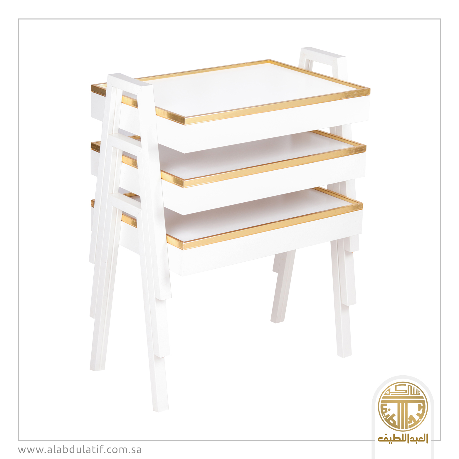 طقم طاولات مستطيلة بإطار ذهبي لامع ثلاث قطع