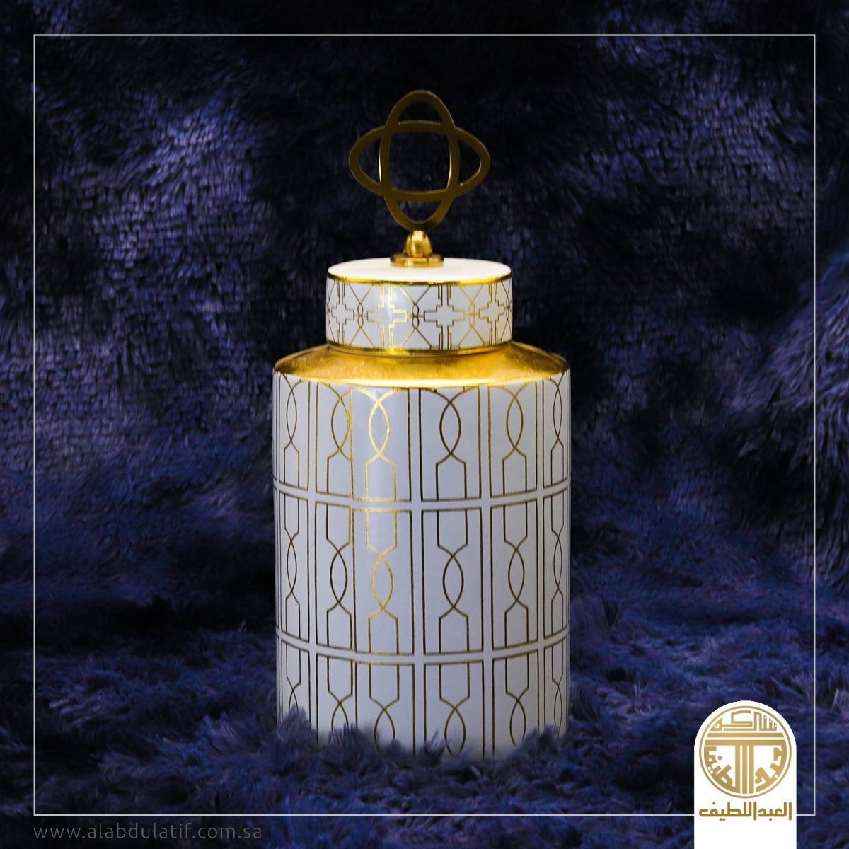 فازه انتيك ممتازه ابيض بخطوط ذهبي مدوره